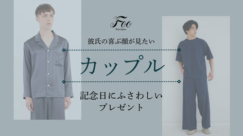 関連記事はこちら まずは彼氏との記念日にぴったりなプレゼントをみていきましょう。今回紹介するのは、ラグジュアリーライフスタイルブランドFoo Tokyoのアイテム。 上質な素材にこだわったパジャマやルームウェア、ライフスタイルグッズなどが揃っています。 男性に贈るプレゼントの定番とも言えるのが靴下。上質な素材と快適な着心地にこだわるFoo Tokyoでは、シルクを77%も使用した靴下があります。 天然繊維であるシルクには放湿性と言われる湿気を放つ特性があります。そのため、靴の中でムレやすい靴下には最適な素材。シルクソックスを履いていれば、足元を一日中快適に過ごすことができます。 履き続けるうちに「ずっと快適」というサプライズを贈ることができる一足です。 こちらも足元に関するプレゼントアイデア。「少し値が張る高級な小物」は自分ではあまり買わないからこそ、プレゼントとしてもらったら嬉しいですよね。 もし彼氏が家の中でルームシューズを履いているなら、本革を使用したリュクスなルームシューズをプレゼントしてみてはいかがでしょうか? Foo Tokyoのルームシューズは創業70年以上の老舗メーカーと共同制作。裁断から仕上げまで一貫して、国内工場の熟練した職人の手で一つ一つ丁寧に制作しています。 甲の部分には国産の牛革を使用。本革には吸湿性が備わっているため、ムレやすい足元を快適にしてくれるのも魅力の一つ。 レディースサイズもあるので、お揃いで履くこともできますよ。 フォーマルウェアの代表格であるジャケットで活用される「ダブルボタン」のデザインを採用し、パジャマでありながらエレガントな見た目を実現したコットンパジャマです。 まさにデザインそのものがサプライズ。まるでジャケットのようですが、その軽やかな着心地はパジャマに他なりません。ギフトボックスを開けた時と生地を触った時の印象の違いに驚くはずです。 カラーは美しい空の流れをイメージさせるネイビー、ターコイズ、オフホワイトの3色がラインナップ。 素材には世界に存在する綿花の中でわずか0.1%しか収穫できない希少な超長綿「DCHコットン」を使用しています。素肌にも環境にも優しいコットンから作られた糸は、シルクのような艶感と滑らかな肌触りが特徴。 高級オーベルジュの室内着やビジネスジェット機の機内着としても採用されている格式高い一着です。 ポップで明るいデザインを好むおしゃれな彼氏におすすめしたいのが、襟や裾にバイカラーのアクセントを置いたポロシャツ&ハーフパンツのルームウェア。 外にも着ていけるデザイン性があり、リモートワークが多い人にも最適な一着です。 生地には和紙から作られた糸とポリエステル糸を撚糸した、Foo Tokyo特注の糸を使用。和紙には天然の消臭効果、紫外線カット効果、調湿効果が備わっています。軽やかで機能的な和紙糸にポリエステル糸を撚糸することで強度を増し、さらに速乾性も強化しました。 生地の編み方には、通気性に優れて肌への接地面が少ない「鹿の子編み」を採用。汗をかいても生地が肌に張り付きにくい工夫を施しています。 汗をかいても蒸れにくく、さらりとした肌触りが持続。快適な着心地という「サプライズ」をお届けするルームウェアです。 最高級の6A/5Aランクのシルクを100%使用したシルクパジャマは、ギフトボックスを開けた瞬間にサプライズを贈ることができる一着。Foo Tokyoのアイテムの中で最もプレゼントとして選ばれています。 一度着てしまったら他のパジャマには戻れないほど、とろける質感と快適な着心地が最大の特徴。シルク特有の保湿力が肌を優しくケアしてくれるので、乾燥する冬場などにもおすすめです。 Foo Tokyoのシルクパジャマは通常のパジャマより少しだけ幅がゆったりと作られており、睡眠を妨げません。疲れた身体を優しく包み込み、深い眠りへと誘ってくれるでしょう。 カラーは男性に人気のエレガントネイビーやチャコールグレーをはじめ、リゾート地を思わせるウォータカラーシリーズや、リュクスなシルクジャカードシリーズなど様々なアイテムがラインアップ。 男女兼用のデザインでサイズが豊富にあるので、お揃いで着ることもできます。 関連記事はこちら 次に、彼氏へのサプライズプレゼントの予算をみていきましょう。一般的な年齢と収入のバランスを考えて相場は決まっていますが、自身の懐事情にあわせて選ぶのがベストです。 20代の社会人が彼氏にプレゼントを贈る場合、相場は10,000円〜30,000円とされています。 社会人になりたての頃は特に収入も高くないため、無理して高い金額のものを買うよりは相手が欲しいものとのバランスを考えて選ぶのが良いでしょう。 30代前半の社会人が彼氏にプレゼントを贈る場合、相場は30,000円〜50,000円程度がおすすめ。 20代より可処分所得が増えるので、少し良いものを購入することができます。一方で、10万円を超えるプレゼントなどはお互いの負担になることも