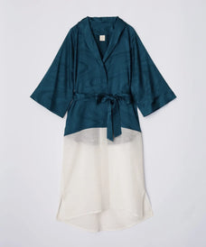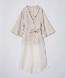 このガウンは、日本の熟練した職人によって手作りされ、素肌に吸い付くような着心地とエレガントなデザインが特徴です。アミノ酸を豊富に含むシルクは、敏感肌やアトピー肌の人でも安心して着用できる素材です。