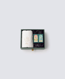 世界の綿花生産量のうちわずか0.001%以下の収穫量しかない、希少なオーガニックコットンを使用したフェイスタオル1枚とハンドタオル1枚のギフトセットです。