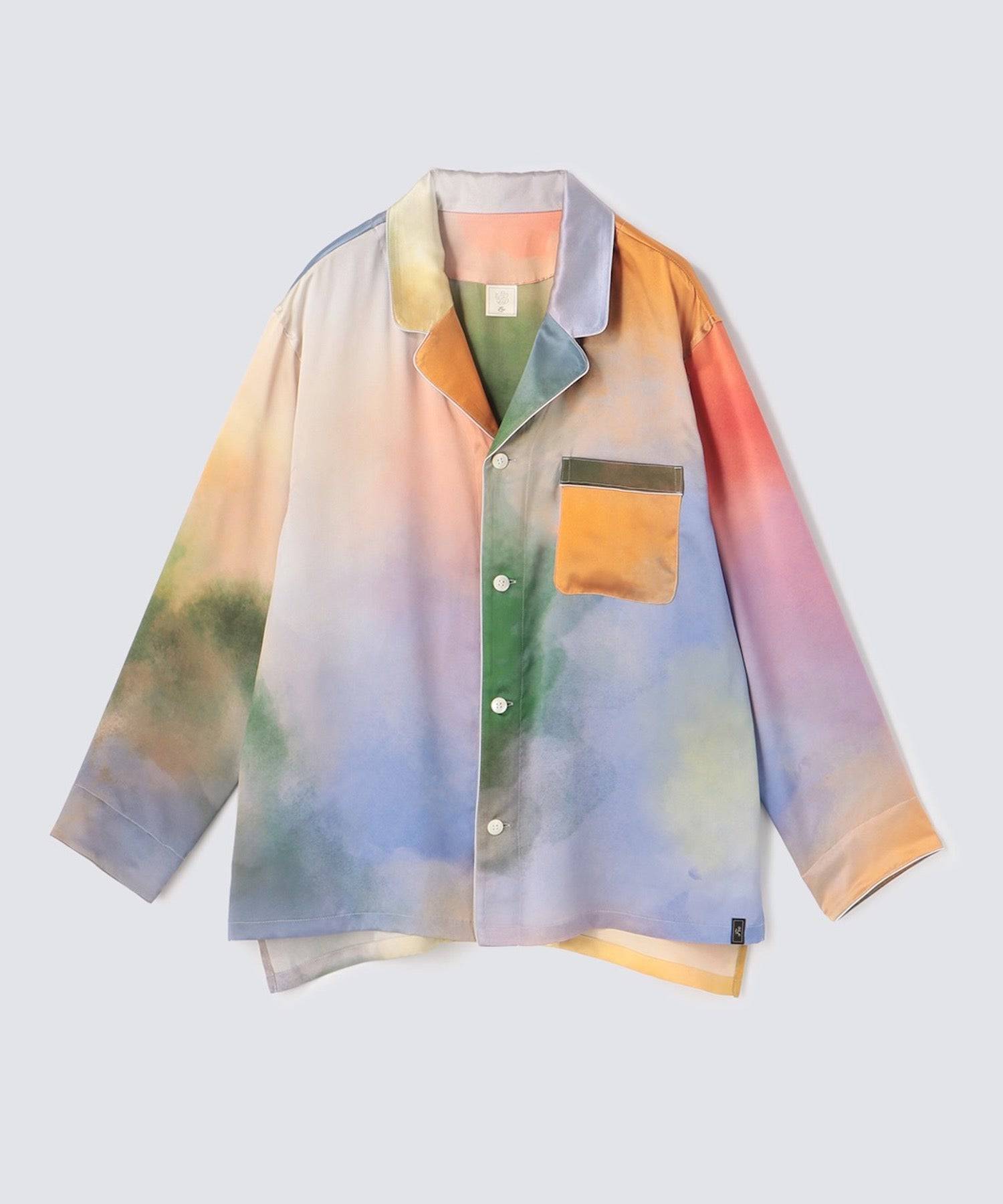 一見ベーシックなスタイルですが、トップスのシャープな襟や光沢感のある生地で、外着のシャツのようなビジュアルのパジャマです。