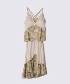 シルクジャガードガウン ウォーターパターン グリーン/シルクドレス パールホワイト