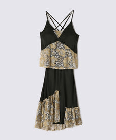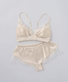 【セットアップ】レースシルク シャツ & レースシルク パンツ カーキ