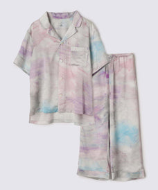 【セットアップ】ウォータカラー シルクパジャマ ミスティレイク