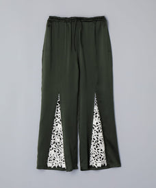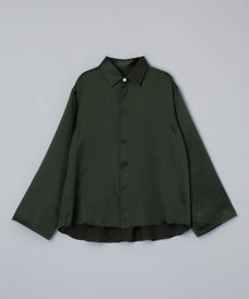 【セットアップ】ロングカフス シルクシャツ&ストレートシルクパンツ カーキ